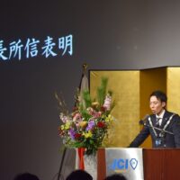 式典の部では、厳粛な雰囲気のなか、第70代理事長 小國奎馬 が所信を表明いたしました。